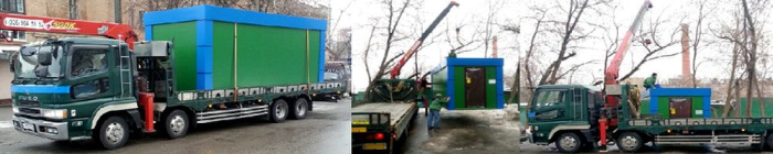 • — перевозка бытовок краном манипулятором;